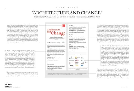“Architecture and Change”: The Politics of “Change” in the U.S. Pavilion at the 2016 Venice Biennale